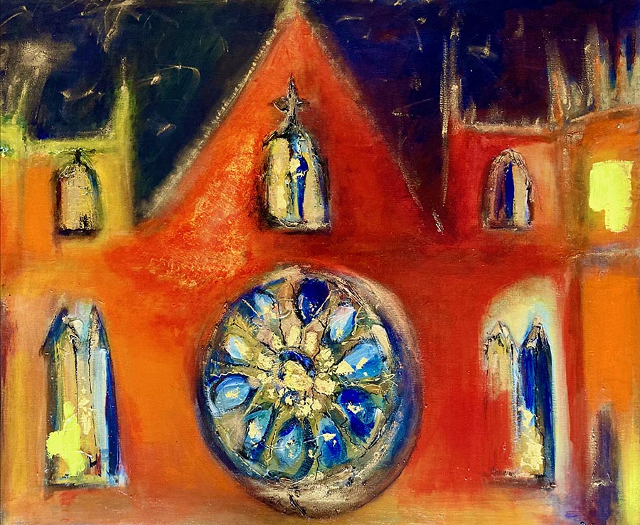 "La cathédrale de Rouen, la flamboyante II" Collection particulière Acrylique, mixmédia,feuilles d'or
