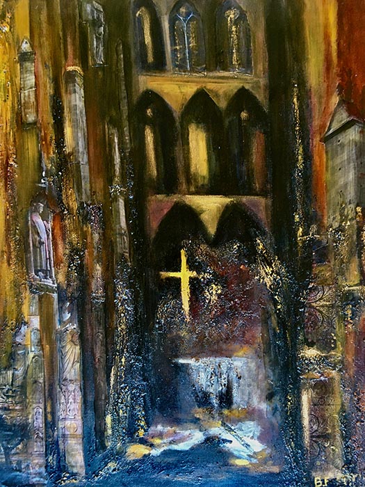 "La cathédrale de Rouen I" 620 Euros Acryique et mixmédia